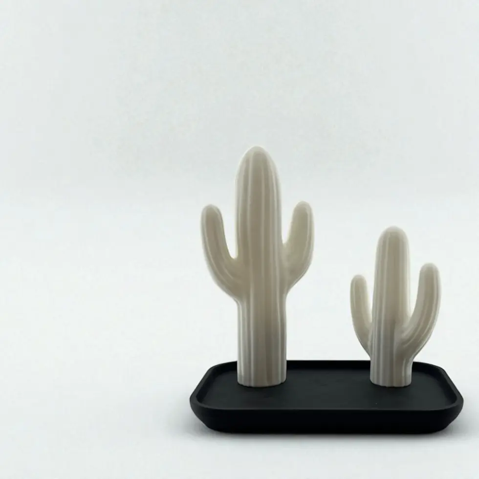 Cele două forme sculpturale de cactus oferă o soluție ingenioasă pentru a-ți expune colierele, brățările și inelele, păstrându-le mereu la îndemână și fără încurcături. „Brațele” delicate sunt ideale pentru mai multe inele, în timp ce tava de bază spațioasă adăpostește cu eleganță cerceii, ceasurile sau alte accesorii mici.