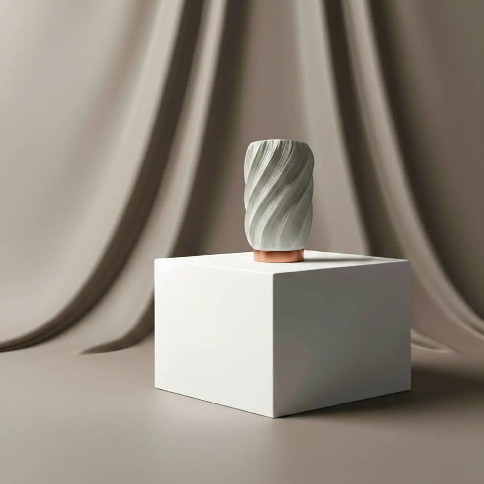 Suprafață flautată, cu textură mată distinctivă. Fiecare obiect prezintă mici variații naturale ce reflectă autenticitatea materialului și a procesului de imprimare 3D. Disponibil într-o paletă de culori atent selecționate pentru armonie vizuală în spațiile moderne.